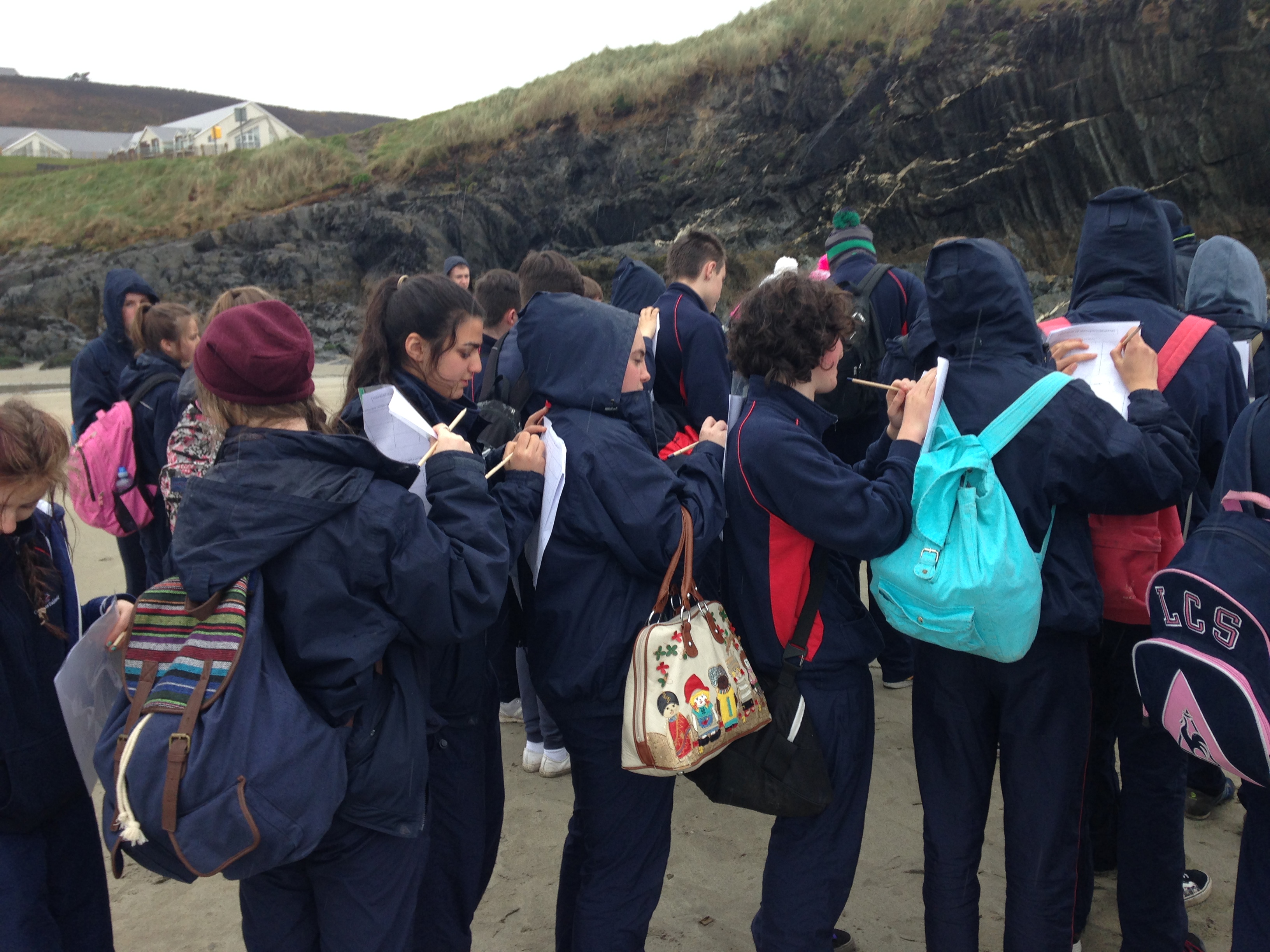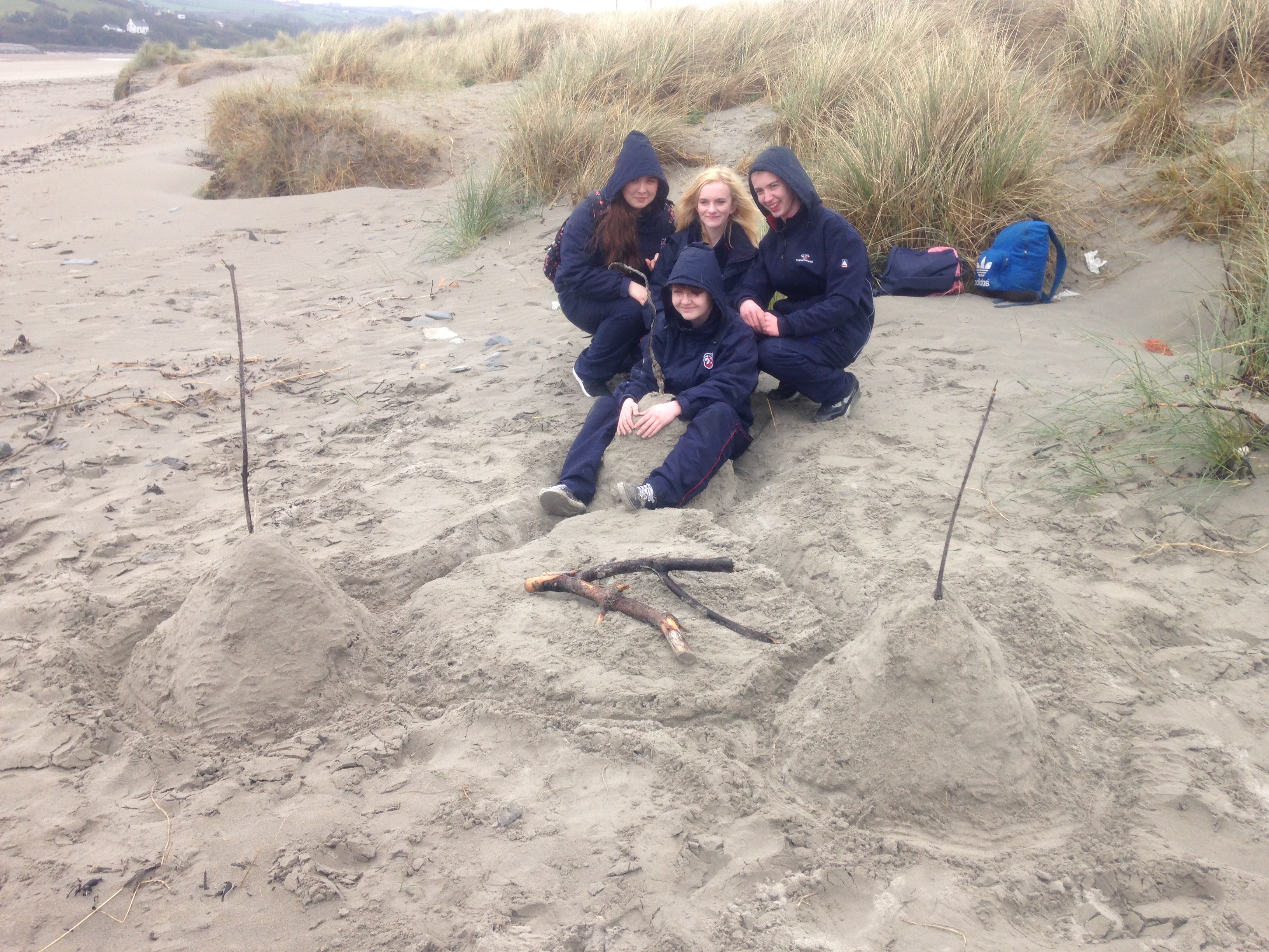 3rd Year Geography Classes went to Inchydoney Beach in Clonakilty on April 22nd 2016 to study coastal erosion and depostiion. The students worked on the wave-cut platform and o the structure of the cave before studying the beach itself! We had lunch in the cave before going to study the slope of the beach. There was time for the important sand-castle competition between the two classes which was won by Ciarraí! Scones and tea or coffee were provided afterwards in Inchydoney Lodge and Spa…isn’t student life great?!