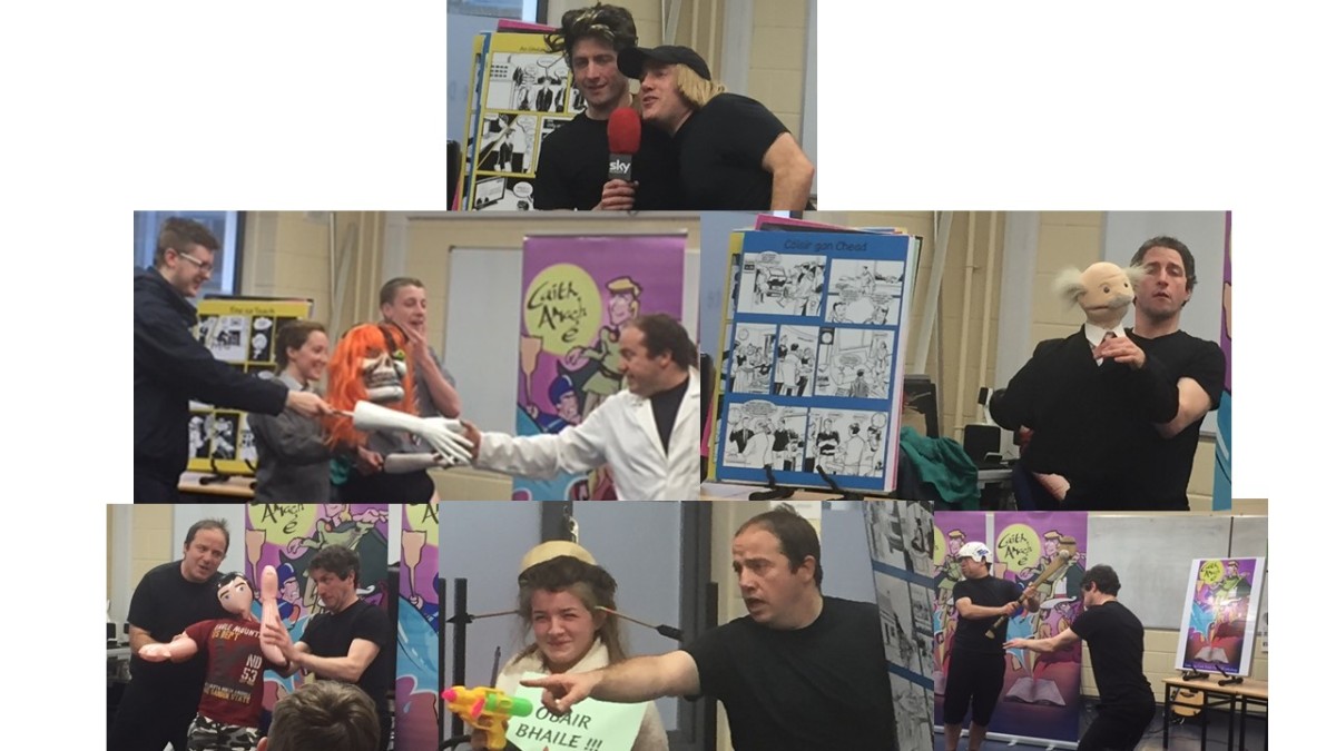 D’fhreastail daltaí na hArdteiste ar sheó grinn bunaithe ar an bhfiche sraith don bhéaltriail Ghaeilge i mbliana. Bhí sé bríomhar, barúil agus spreagúil, lán le stíleanna eagsúla dramaíochta, ceol, puipéidí, agus idirghníomhaíocht. Spreag na gníomhaíochtaí na daltaí chun labhairt ar bhealach an-spraoiúil agus an-nadúrtha. Ba ullmhúchán iontach é. Chuaigh David Beckham, Niall Horan, Barack Obama agus Daniel Craig faoi scrúdú na béaltrialach freisin. Ghlac Nidge ó Love/Hate agus an Bhanríon Éilís a hAon páirt sa cheardlann chomh maith agus iad ag iarraidh feabhas a chur ar a gcuid Ghaeilge!