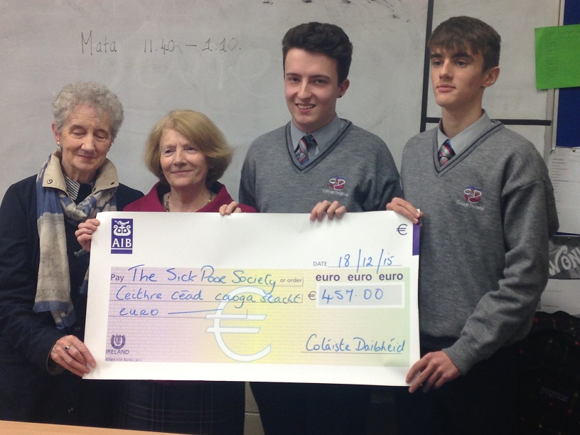 Comhairle na nDaltaí ag bronnadh airgid ar Cork Simon an Cork Sick Poor Society roimh an Nollaig / Nuacht / By Coláiste Daibhéid Bhronn Comhairle na nDaltaí €457 ar an Cork Sick Poor Society roimh an Nollaig. Bailíodh an t-airgead mar thoradh ar “Lá nGeansaithe na Nollag 2015”