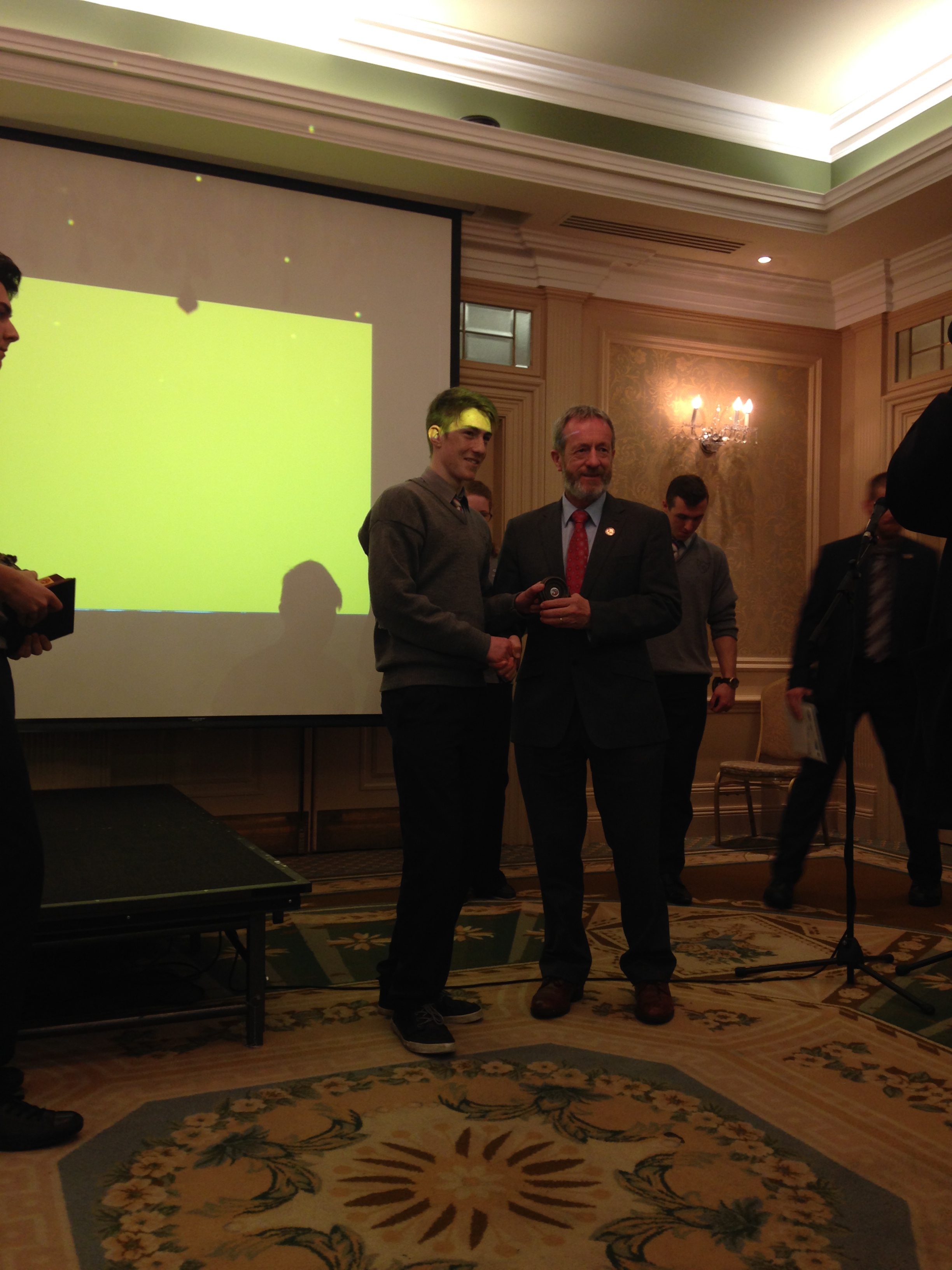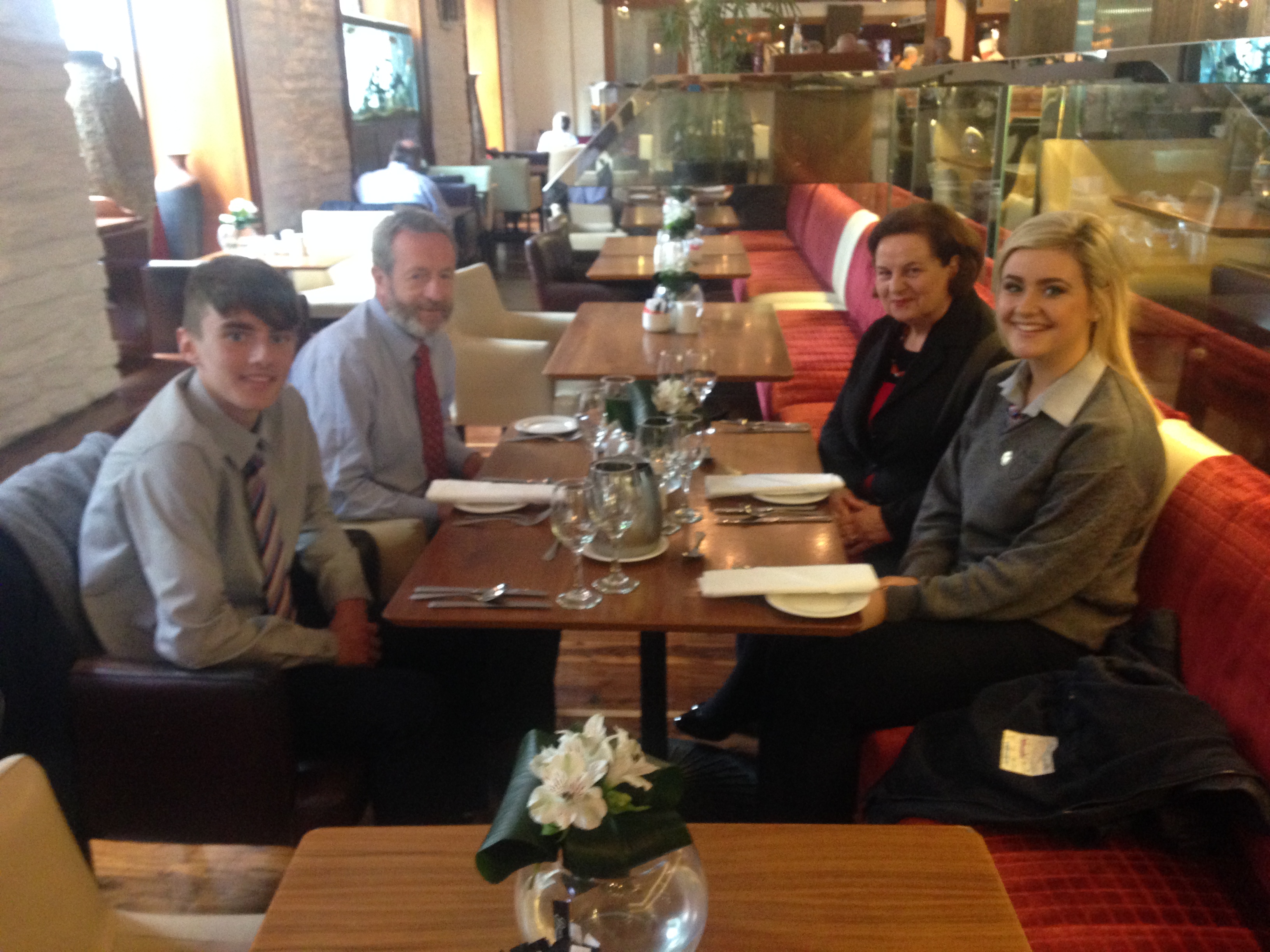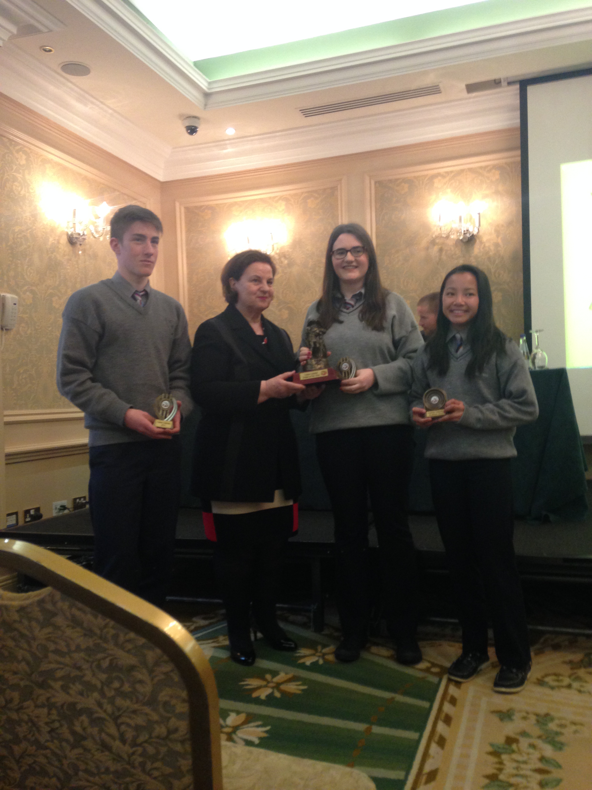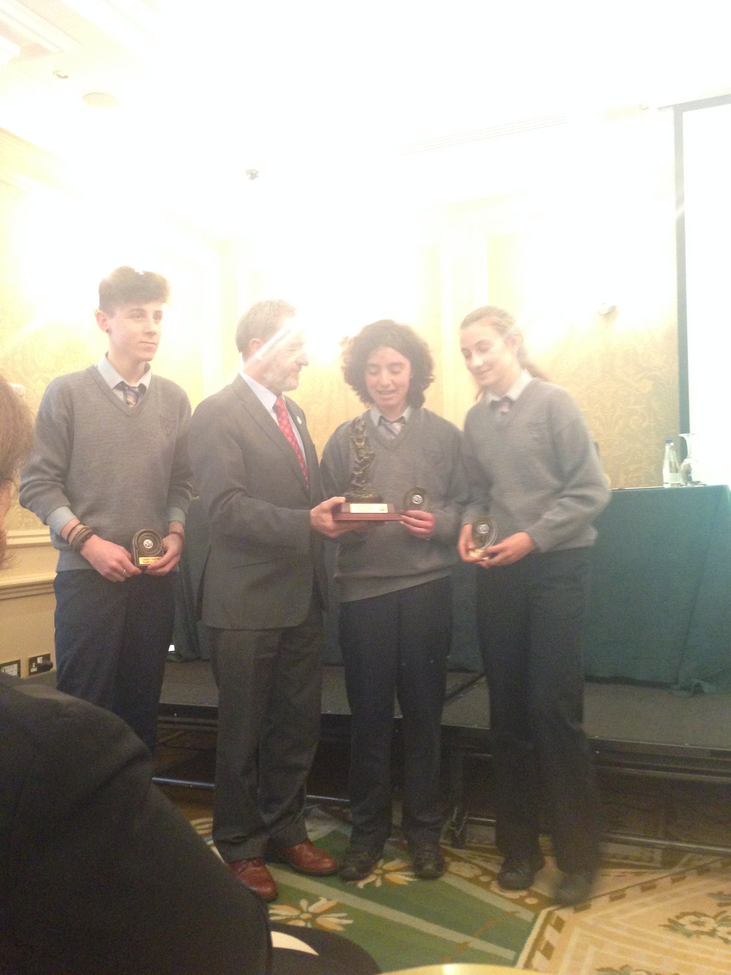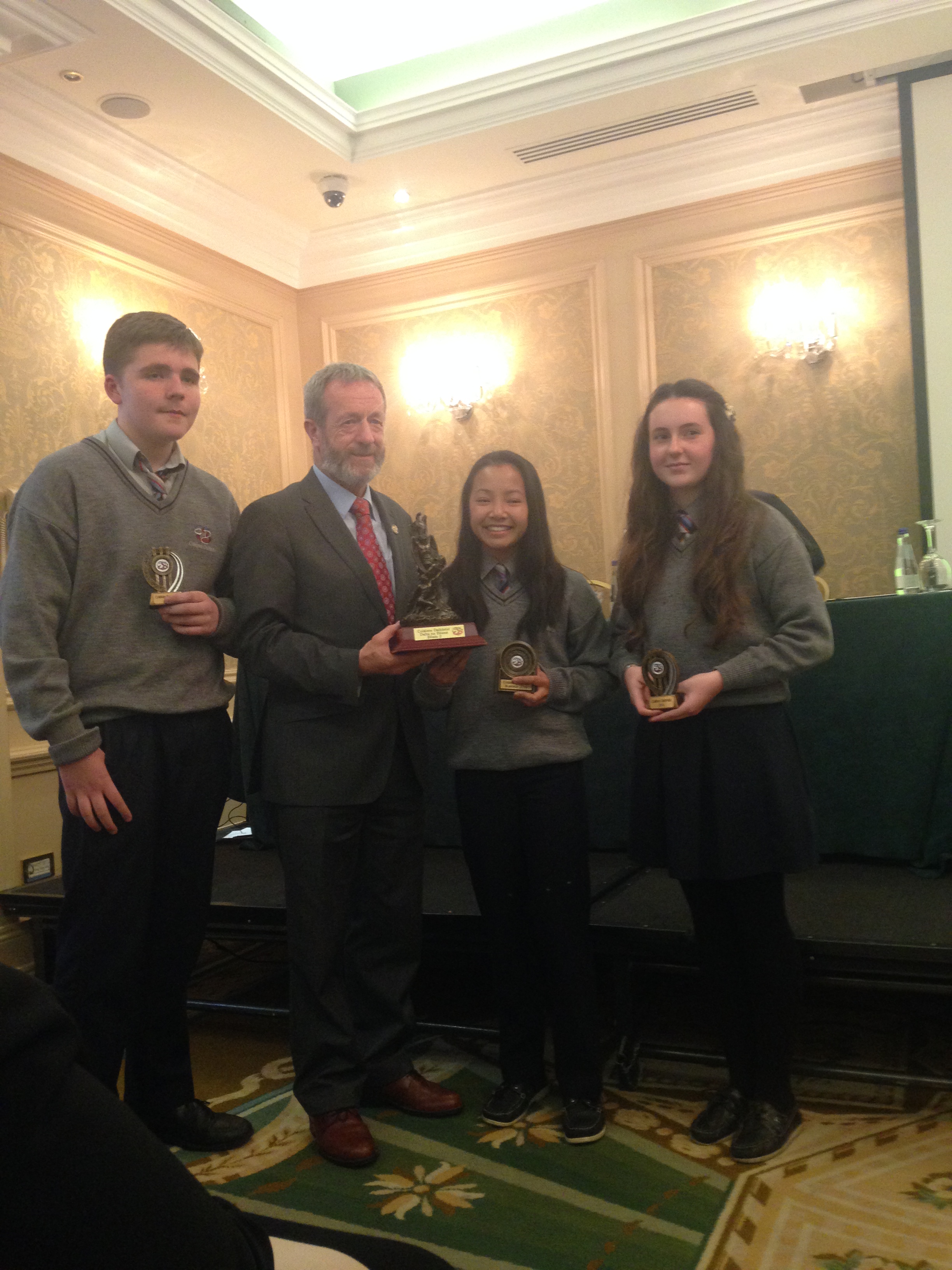 We had a very enjoyable whole-school occasion on May 17th. Our Annual School Awards, Gradaim na Scoile, were presented in the Imperial Hotel, Cork. All students and teachers attended, as well as some parents. We were delighted to have our special guest in attendance, Mr. Seán Kelly, Member of the European Parliament and Past President of the GAA. Máire Bn. Uí Bhriain, Chairperson of the Board of Management, was also with us. She presented a new award, Gradam Uí Bhriain, ‘An Tine Bheo’, to the student who most embodied the student spirit of Coláiste Daibhéid this year, Ewan Mac Conchra (6th Year). School Principal, Tadhg Ó Laighin, this year presented Gradam Daibhéid, The Principal’s Award, to Michaela de hÍde (6th Year). Deputy Principal, Pól Ó Síodhcháin, created a short film of the year’s highlights especially for the occasion. Our school musicians performed a nice mixture of songs under the direction of Iníon Uí Bhreacáin. A YouTube clip of their performance of Óró ‘Sé Do Bheatha Bhaile’ is below aswell as a list of the awards recipients and some photos: