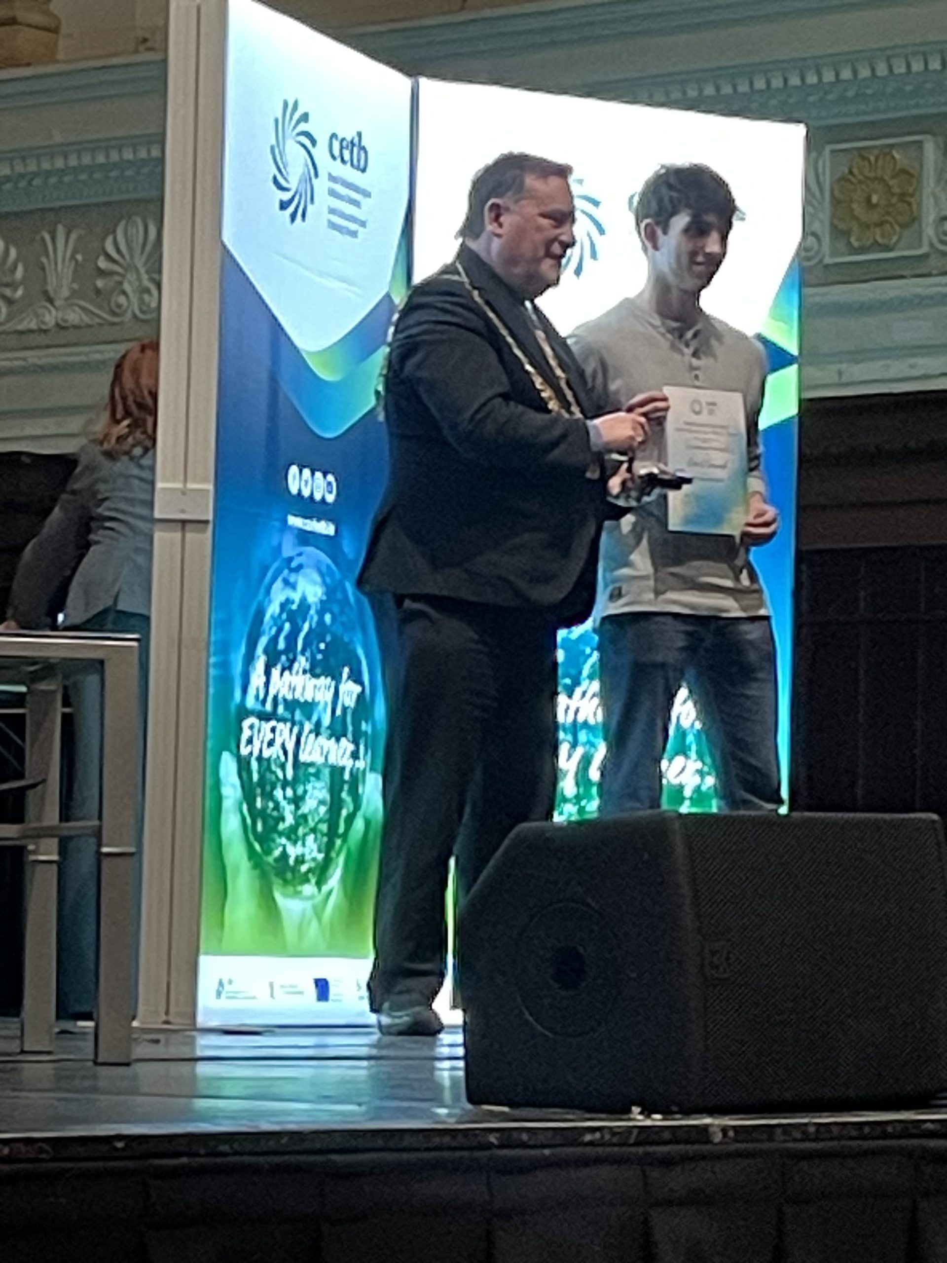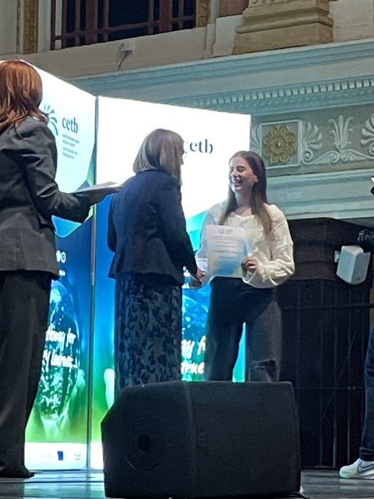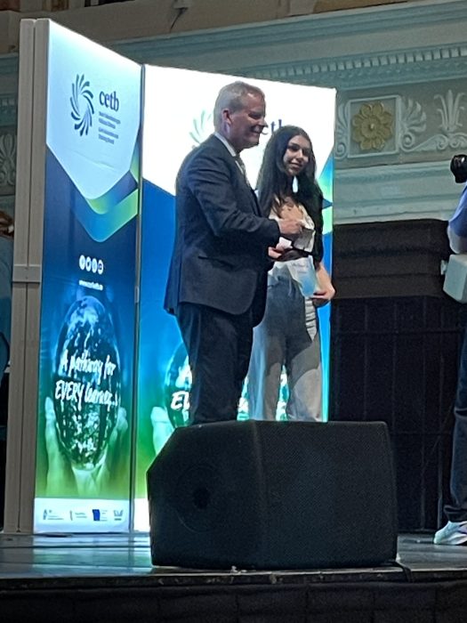 Comhghairdeas lenár n-iarscoláire a fuair aitheantas i Halla na Cathrach ar an Aoine seo caite don éacht a bhaineadar amach san Ardteist 2024. Congratulations to our 7 students who were recognised by the CTEB for their academic excellence in the leaving certificate in 2024
