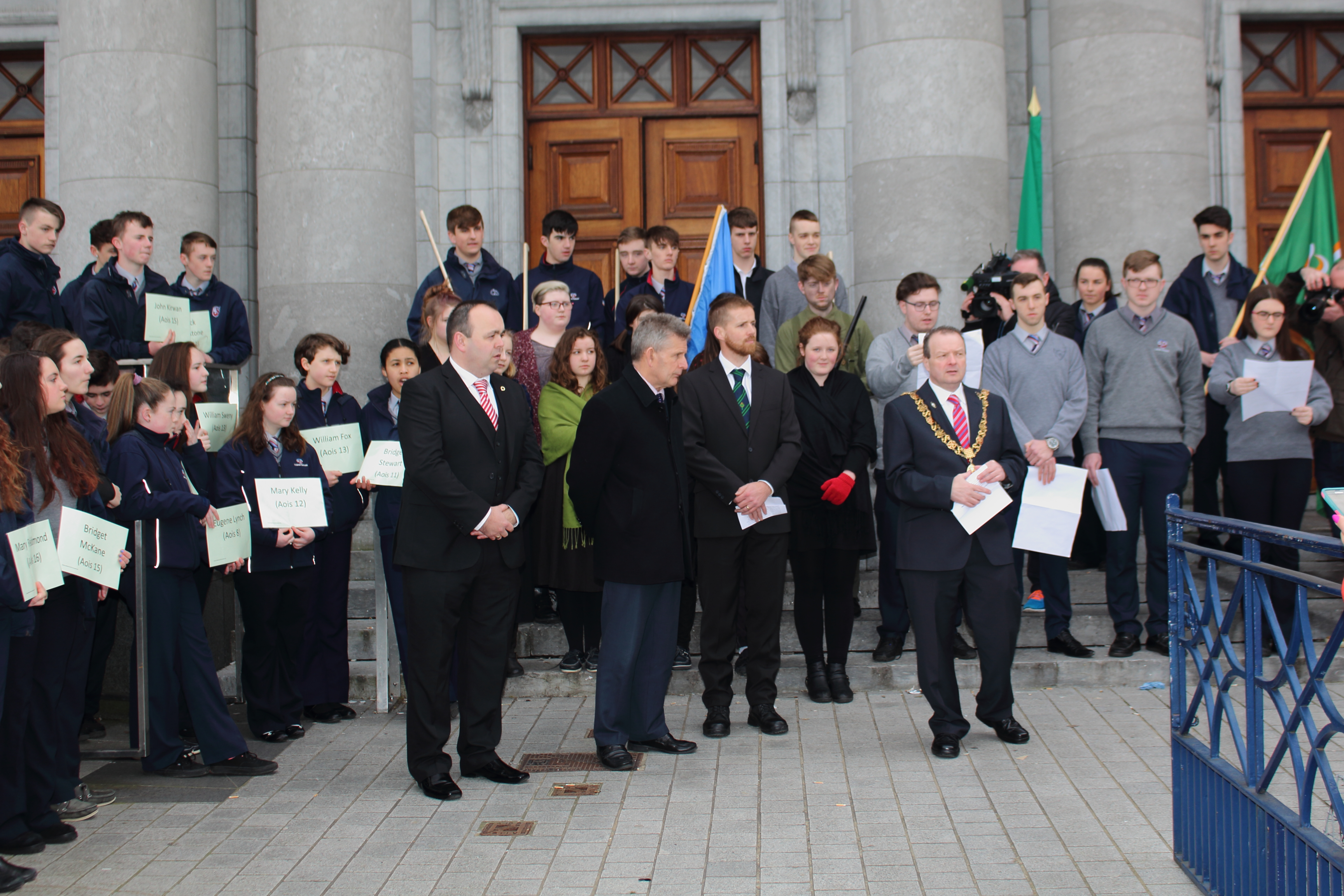 We had a big day of commemoration on the 15th of March as part of Proclamation Day 2016. THe school community assembled at City Hall where we were received by the Lord Mayor, Cllr. Chris O’Leary. The Principal spoke to us about the occasion and welcomed our guest, Mr. Ted Owens, Chief Executive of Cork Education and Training Board.