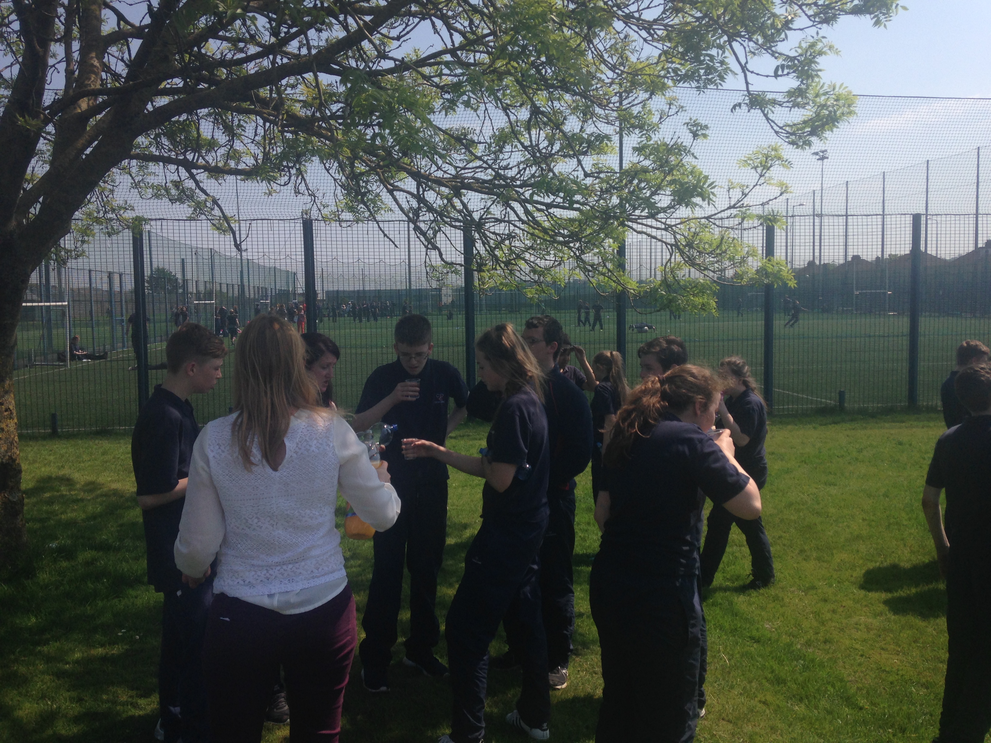 Our School Sports Day was held in St. Finbarr’s GAA Club on May 13th. Despite the temperature heading for 26 degrees Celsius, a great day was had by all. Students were organised into mixed teams to take part in an obstacle course, puc fada, penalty kicks, unihoc, long-jump, javelin and running. The day concluded with a Teacher (and some 6th Yrs!) versus Transition Year soccer match on the Astro. A highly competitive 5-5 draw resulted! We are extremely grateful to Iníon Higginbotham and the Transition Year Classes for their highly efficient organisation of the day’s events.