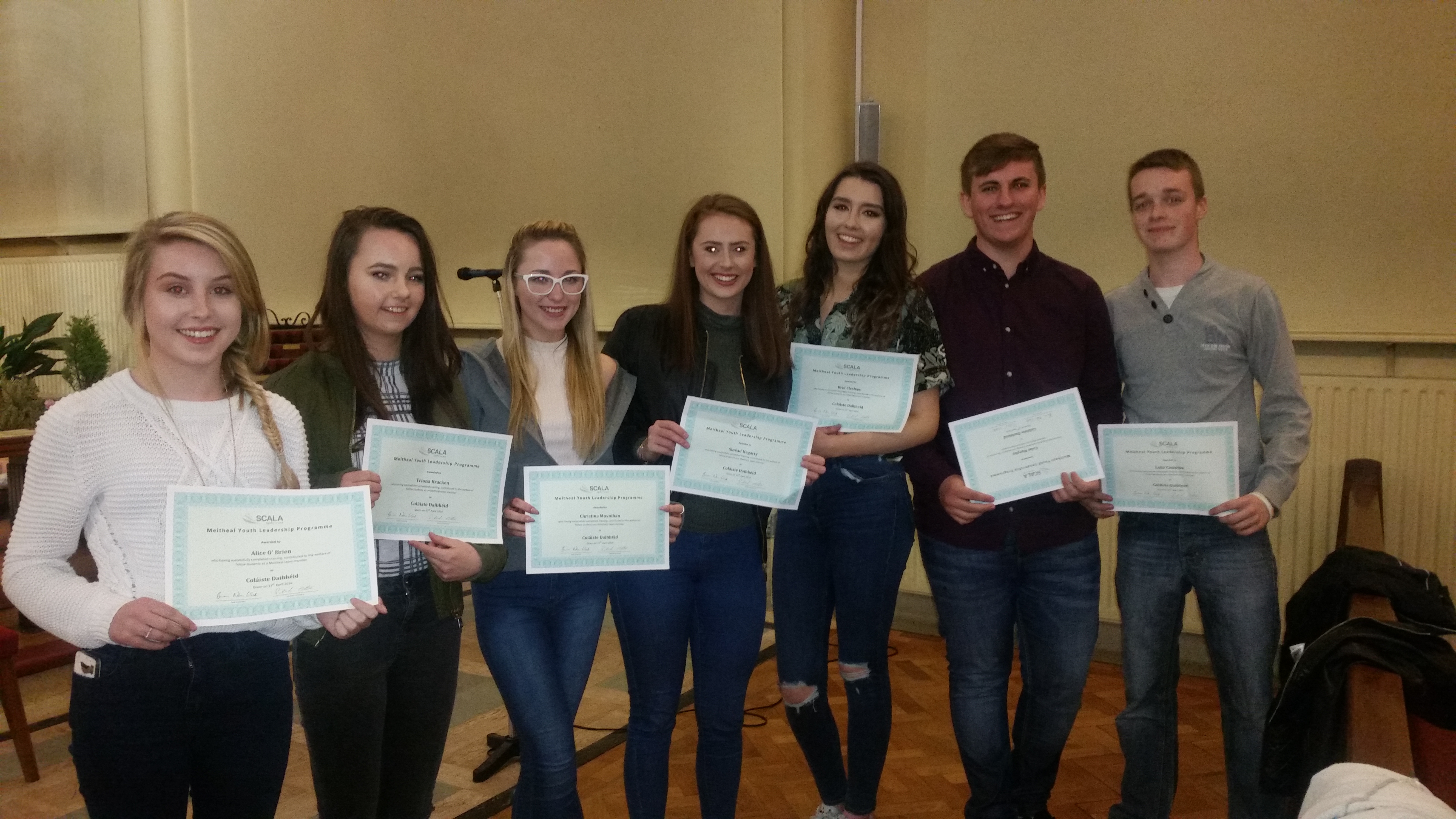 Meitheal began in Coláiste Daibhéid this year. There are seven 5th year students on the team. They spent four long days last May in training for their new role. There are twenty schools and over 200 s in Cork involved in Meitheal. Training and meetings take place in Scala in Blackrock on Sundays. A member of this group has an important function within the school as they work directly with the new incoming First Year classes.