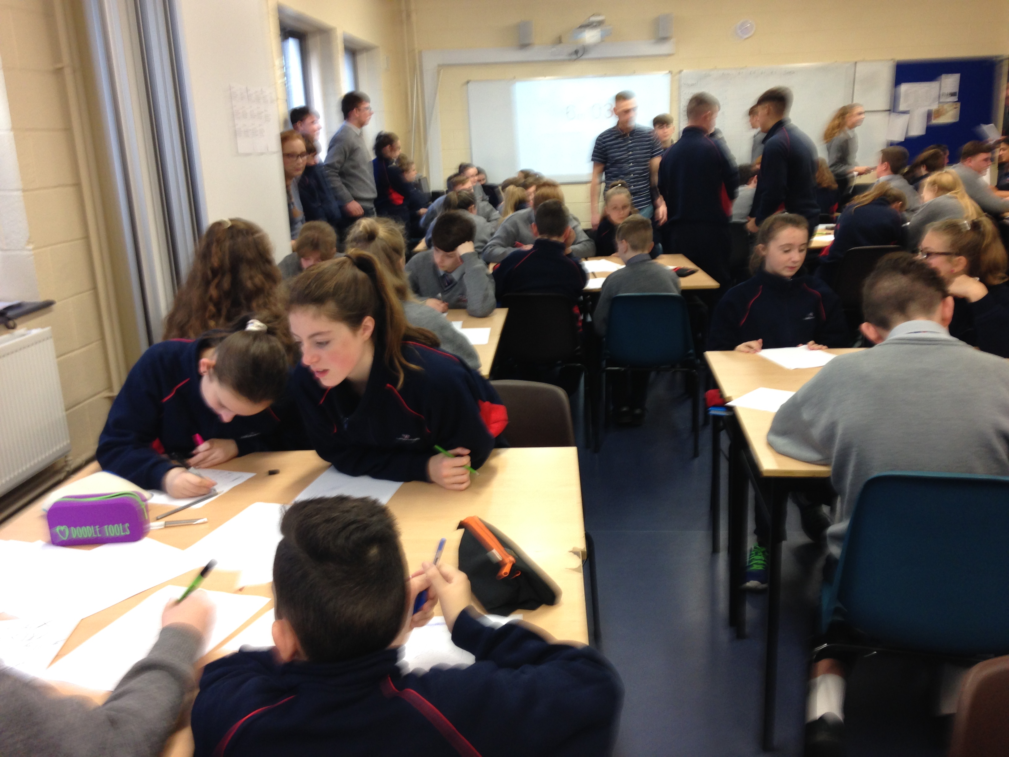 Maths Week 2016 is taking place in the school this week with a comprehensive programme of enjoyable activities organised. On Monday, a Maths Table Quiz was held for First and Second Year Students under the direction of Transition Year Students and Máistir Gúl. Plenty of challenging questions were takled in what was a great event. We have Daily Puzzles and maths activities during morning break and lunchtime.